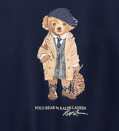 Elegant sweatshirt from Polo Ralph Lauren in a deep navy blue shade. The Polo Ralph Lauren sweatshirt features a charming print of a soft toy dressed in stylish clothes, adding a unique element. The Sweatshirt has long sleeves and a round neckline that complements the design, and it has a soft, brushed cotton inside.