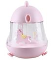 Smart Rabbit & Friends lamp in pink in the shape of a bear, with cute ears and face and included remote control and charging cable.