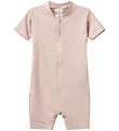 Practical coverall swimsuit from Sofie Schnoor in a dark beige shade. The swimsuit has short sleeves and a practical zipper with chin guard and an inner placket, making it easy to put on and take off. Perfect for the sandy beach and swimming pool.