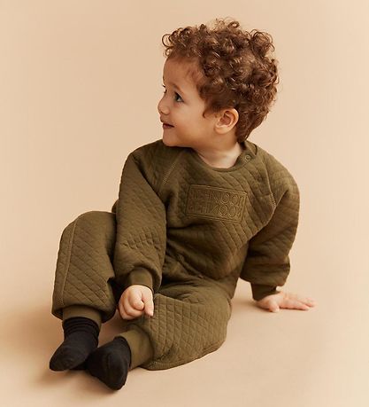 Gorgeous Sofie Schnoor sweatpants in a nice olive green colour with a stylish quilted pattern. The sweatpants have an elastic waist and ribbing at the ankles for optimal fit and comfort.