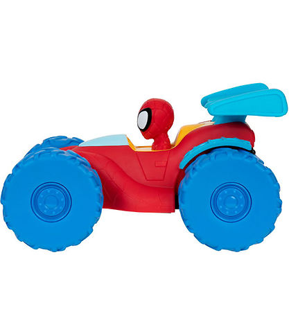 Colourful Spidey web climber in red and blue shades with Spidey as the driver. The vehicle has a retractable motor that allows it to climb up and over obstacles. Grab the vehicle and push it forward to activate the motor. Then you release the vehicles and will race away together with Spidey.
