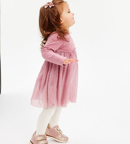 Fine The New Siblings bodysuit w. skirt in vintage pink with a tulle skirt with gold dots.