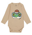 The New Siblings bodysuit has long sleeves and it has a nice skirt at the waist, so it looks like a dress. The dress body opens at the left shoulder with push buttons, and between the legs there are three push buttons.