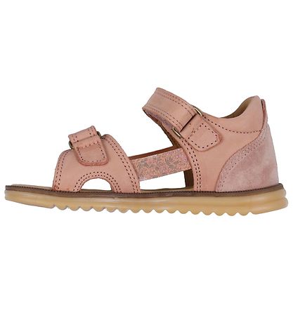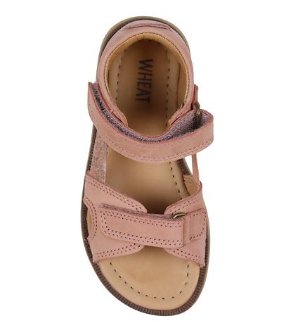 Beautiful Wheat sandals in pink leather, with a suede detail on the heel.