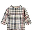 The Wheat shirt has long sleeves and opens at the front, with pull-through buttons. In all openings there are narrow edges and the shirt is in a delicious cotton quality.
