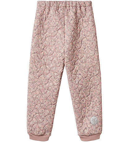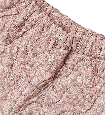 fine Wheat thermo trousers in pink with an allover floral print. The Thermo trousers have a wavy, quilted structure.