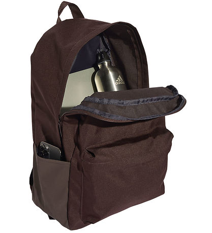 The adidas Performance backpack consists of one large Rum, which is opened by two zippers, and inside there is a Rum for a tablet or laptop. At the front there is a smaller Rum with a zipper closure. On each side of the bag there is space for a water bottle. The Backpack has adjustable, padded shoulder straps.