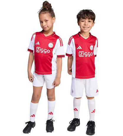 Beautiful adidas Performance football clothing in deep red and white. The Set consists of a t-shirt, a pair of white shorts and a pair of matching socks. The T-shirt is in red with white sides and sleeves, and has the classic adidas stripes on both shoulders, as well as a logo on the front. Perfect for little football enthusiasts.