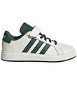 The adidas Performance shoes are a slip-on model with a handle both in front and on the heel, so they are quick and easy to step in. In the opening, there is extra padding, and inside there is a soft lining and a soft insole. The shoes have a supportive heel cap. The outer sole is in white rubber, with a practical pattern under the bottom in black, which ensures a good foothold.