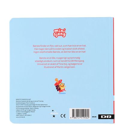 Børste is a little, curious and rather stubborn hedgehog, known from DR Minisjang. The universe is created by Tine Kej, and the books are illustrated by Martin Jørgensen. The Book has thick cardboard pages that even small kids can hold.