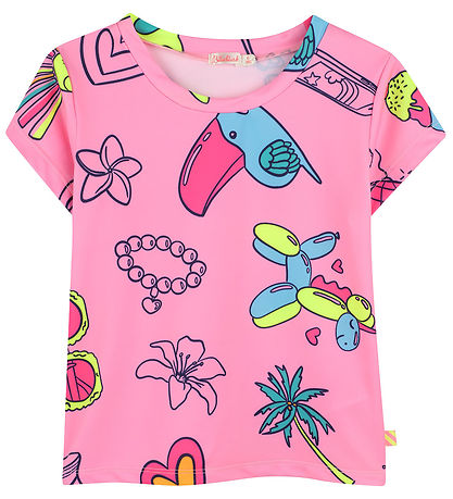 Smart Billieblush t-shirt in pink with an allover print in navy with fun motifs and details in neon colours.