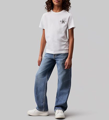 Fine Calvin Klein t-shirt in white, with a logo print on the left chest in black and dark grey.