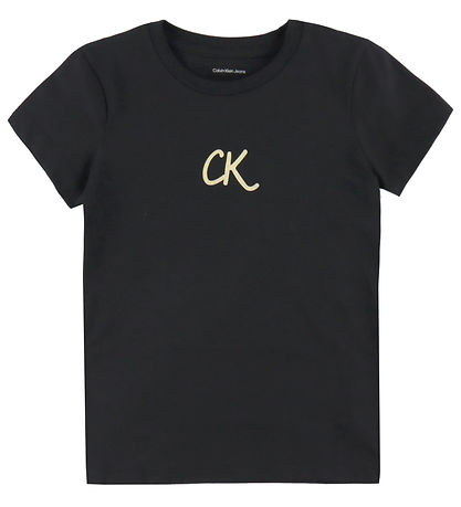Stylish Calvin Klein t-shirt in a classic black. The T-shirt has a simple design with the iconic "CK" logo in beige rubber glitter on the chest.