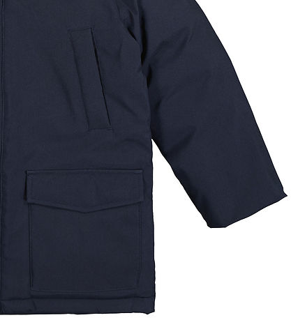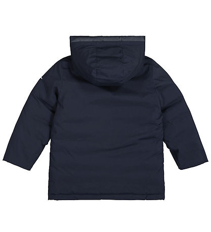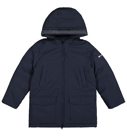 Cool Champion puffer jacket in navy blue with logo print on the left upper arm.