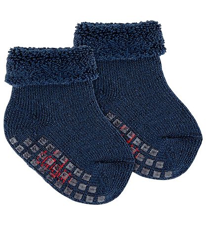 Adorable Condor terrycloth socks in navy with non-slip details under the foot.
