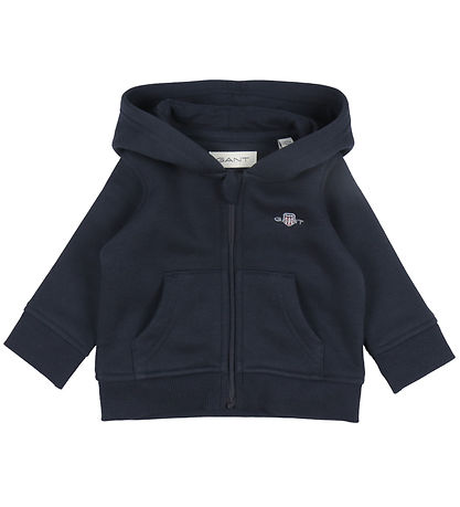 The GANT cardigan has long sleeves with wide ribbed edges and a soft, sewn-on hood. The Cardigan opens with a full zipper at the front and has a practical, divided kangaroo pocket on the front. The Cardigan also has nice, brushed cotton inside and is made in a soft and comfortable cotton quality.