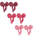 Charming Konges Sløjd elastic hair bands sold in a 2-Pack. The Hair ties are in a light rose and are decorated with a heart-shaped pendant adorned with cherry print and a fine bow in shades of blue and green.