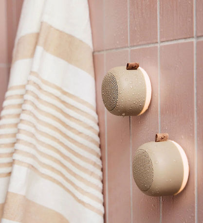 The Kreafunk speaker is completely wireless, and it is little and compact, so it can be easily taken on the go. The speaker is waterproof, so you can take it with you to the bathroom. It can light up at the bottom, and as a smart detail, it is magnetic, so you can use the included self-adhesive metal plate to put it up in the shower. This way you get the best sound when you want to sing along to your favorite songs. It can be connected to all Android and iOS devices via Bluetooth, and a USB-C charging cable is included to charge it.