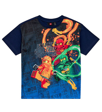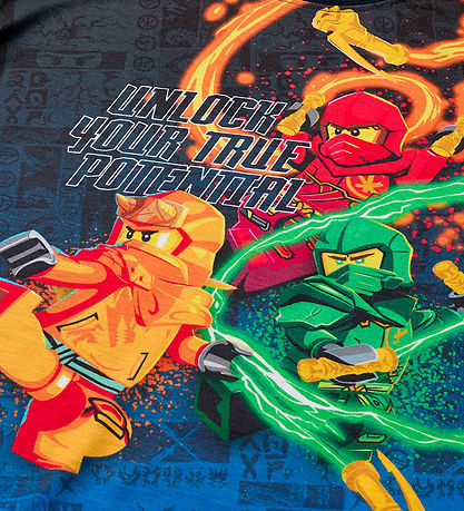 Smart LEGO® Ninjago t-shirt in navy, and on the entire front there is a large print with the ninjas Arin, Lloyd and Kai.