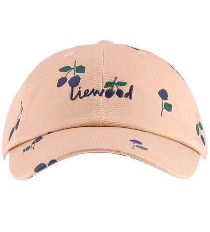 Beautiful Liewood cap in a hot pink with blackberry print and "Liewood" embroidered on the front.