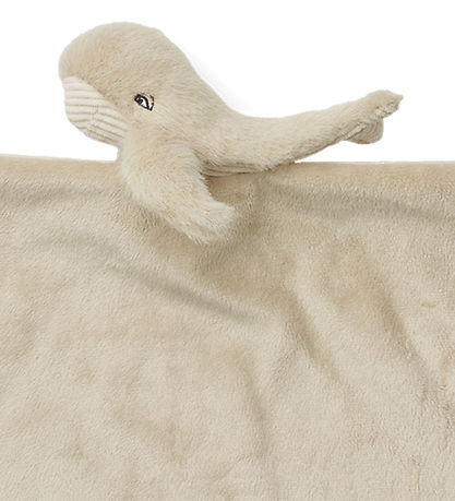Lovely Liewood comfort blanket in beige with a little whale soft toy.
