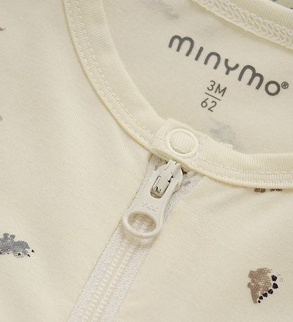 Beautiful Minymo jumpsuit in cream white with a fine all-over dinosaur print in grey, beige and brown.