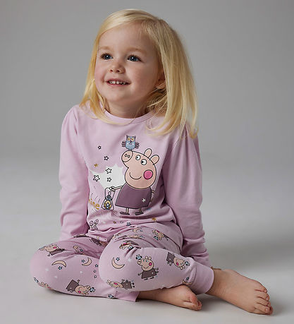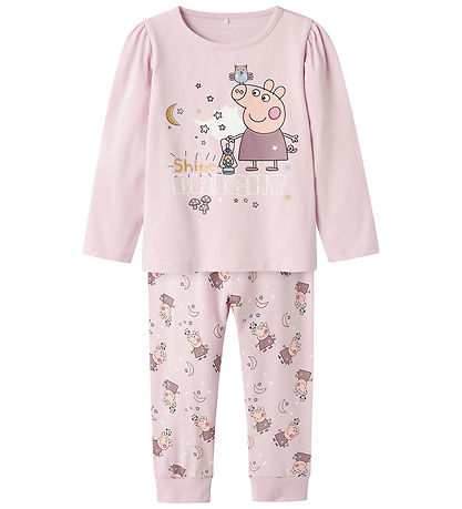 Lovely Name It pyjama set, which is 2 Parts and in a nice light rose shade with a colorful print of the character from Peppa Pig and cute stars and moons on the trousers. The top has long sleeves and a nice motif.