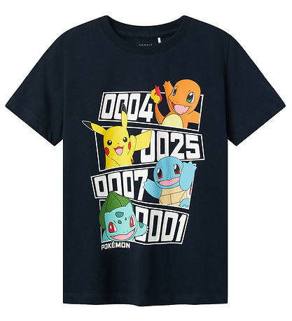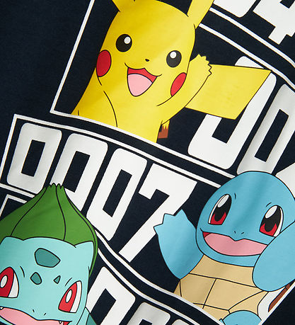 Smart Name It t-shirt in navy, and on the front there is a dangerous print with four Pokémon toy figurine together with a white text print.