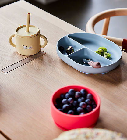 The OYOY bowl can be used for various purposes, which makes it a functional choice in the home. The Bowl is equipped with a smart suction cup at the bottom, which sticks to the table when the kid is practicing eating by himself. The Bowl is made of flexible silicone, and is ideal as the kid's first bowl, as the material does not break.