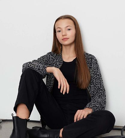 Beautiful Petit by Sofie Schnoor jacket in black with pinstripes in gold and an allover print of grey branches.