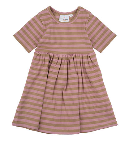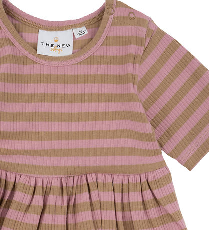Adorable The New dress with horizontal stripes in pink and brown, and with a nice ribbed structure.