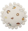 The Babymoov cushion is shaped like a heart with a recess and a hole where the head should lie. The design and the soft, ergonomic and breathable foam support the kid's head, and the cushion is made to help avoid the development of a flat back of the head.