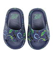 Beautiful BECO flip flops in dark blue with an allover print of various water dinosaurs in beautiful colours.