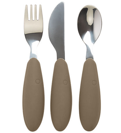 Cute BIBS cutlery in a set with a knife, a fork and a spoon in metal with a shaft in dusty brown.