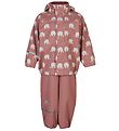 Nice CeLaVi rainwear consisting of a rain jacket and a pair of rain pants in grey. Around the right arm and right leg, the rainwear has a practical reflective stripe, and at the left side of the chest, the right trouser leg and at the top of the hood, there is a reflective print of the brand's name.