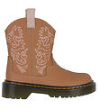 Dr. Martens boots are in the classic model, where the shaft goes up above the ankle, and the boots have a nice lace closure with black shoelaces.