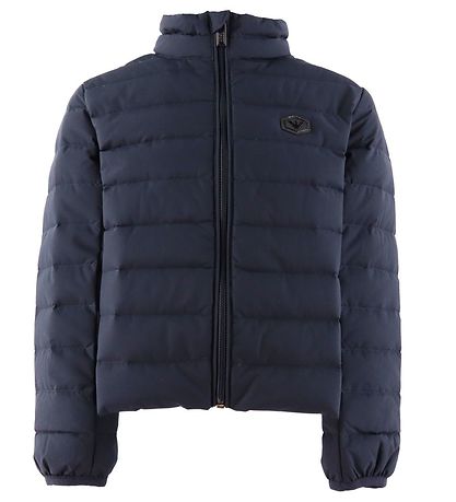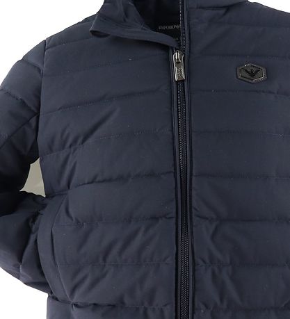 Nice Emporio Armani down jacket in plain navy and with a little rubber patch on the front with a logo.