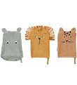 The Fabelab bathing gloves are shaped like rabbits with ears and a round, white face and made of soft terrycloth. They have a handle at the opening so that the bathing gloves can be hung to dry.