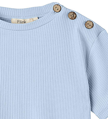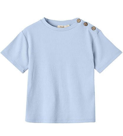 Lovely Fliink t-shirt in a light blue shade in a nice ribbed quality. The T-shirt has a round neckline and pull buttons at the left shoulder. It has short sleeves and a comfortable fit, which makes it a good choice for various everyday activities.