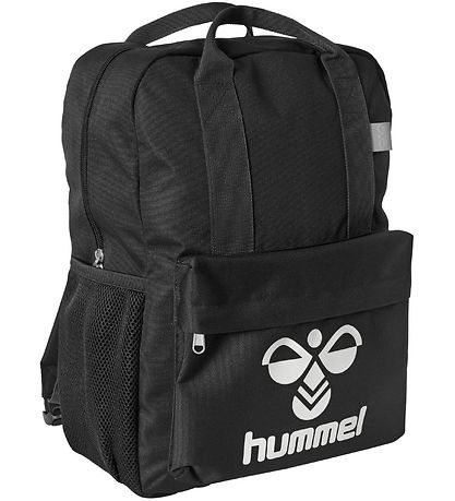 Beautiful Hummel backpack in black with the bumble bee logo on the front and "hummel" underneath in white. On the left side there is a reflex and at both ends of the shoulder straps there are reflexes.