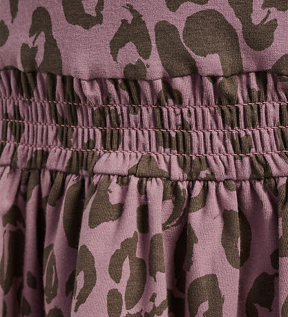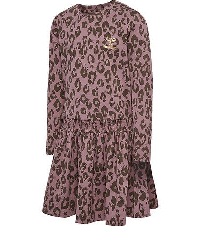 Beautiful Hummel dress in a purple shade with leopard print in an army green shade. On the left chest, Hummel's logo and name are printed in gold glitter.