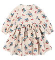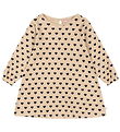 Elegant Konges Sløjd dress in dark beige with a fine print of dark blue hearts. The Konges Sløjd dress has long sleeves with elastic cuffs and a round neckline. The dress's simple design combined with the charming print gives a timeless look.
