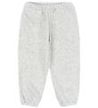 Beautiful Konges Sløjd sweatpants in a classic, melange grey, which are equipped with an elastic waistband and an adjustable drawstring. The sweatpants have elastic at the ankles, which contributes to a good fit.
