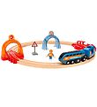 Charming Konges Sløjd wood train in different colours with fun circus figures.