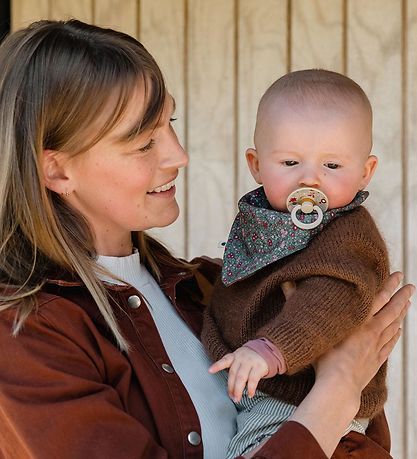 The BIBS x Liberty pacifiers have a round pacifier head made of natural rubber. The pacifier's shield is made of lightweight PP and has a circular and outward-facing design with practical air holes, so that nuisance from the moist environment and vacuum against the kid's skin is avoided.