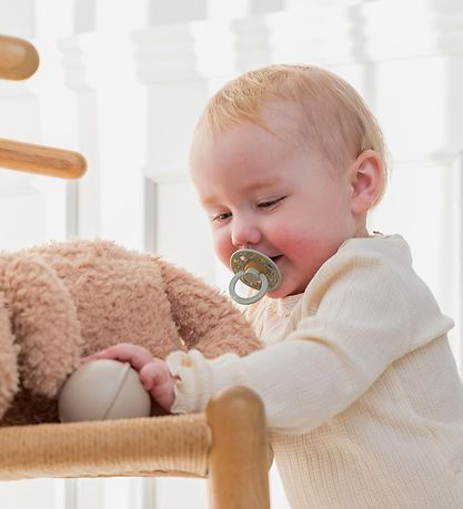 The Pacifiers must be sterilized in boiling water before use and replaced after one month. They are easily cleaned, and water that strays into the pacifiers can be squeezed out again. The Pacifiers are completely Fri of BPA, PVC and phthalates and are approved according to EN 1400.