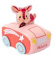 Fun Lilliputien's skipping rope in fuschia with smart wooden handles with prints of a pink flamingo and a plant, respectively.