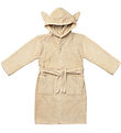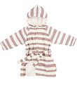 The Müsli bathrobe is made of lovely, soft terrycloth and has long sleeves and a fixed hood. On the front there are two practical pockets, and at the back there is a wide elastic band. The Bathrobe closes at the front with wide drawstring around the stomach and a button at the collar.