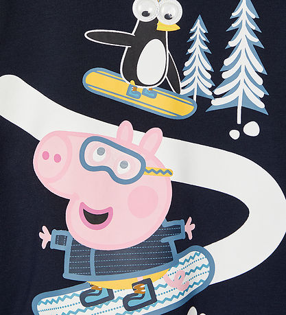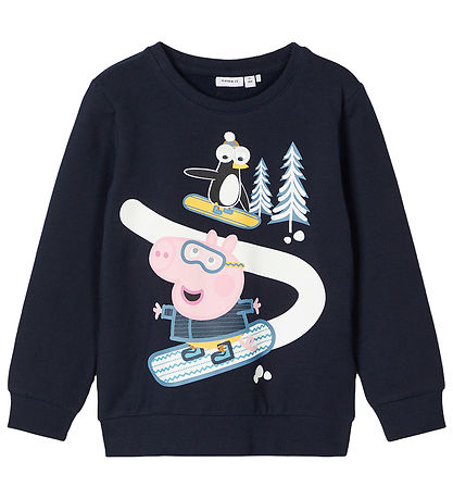 Nice Name It sweatshirt in a dark blue shade with a fun print of Peppa Pig and a penguin snowboarding. The sweatshirt's design creates a lively look, perfect for the little one's wardrobe.