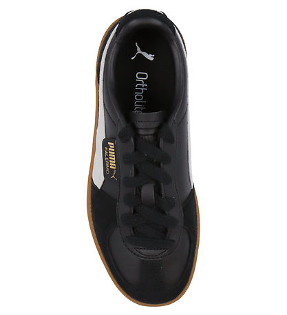 Great Puma shoes in black leather and suede with white logos on the sides.